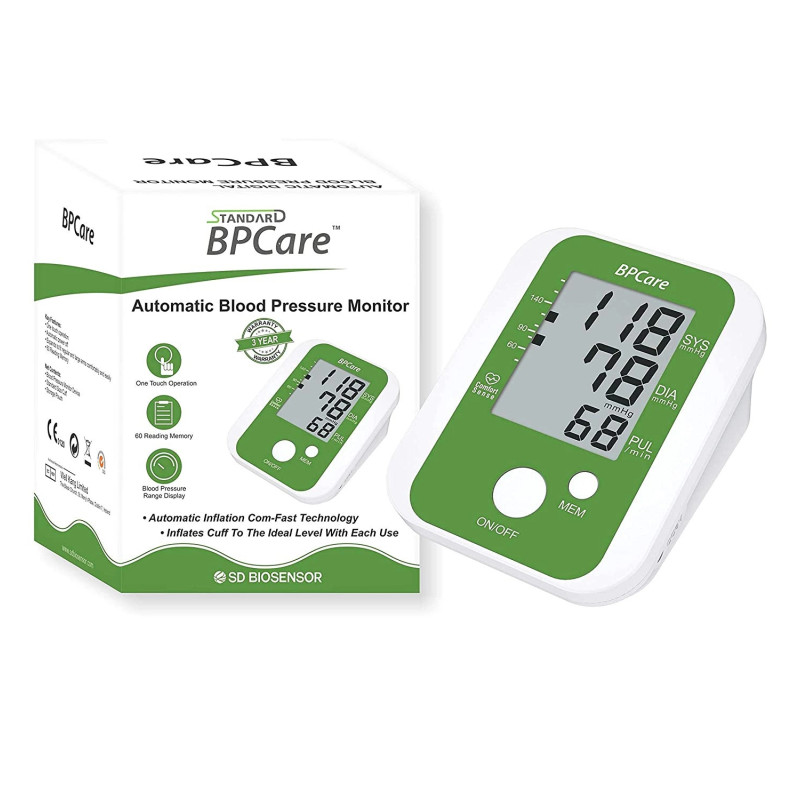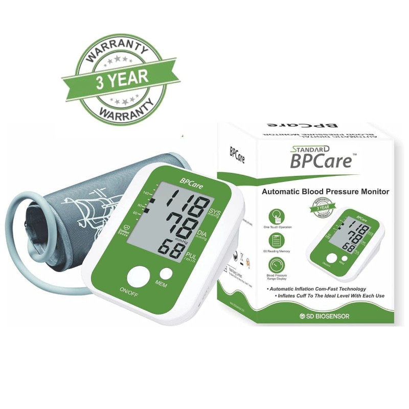 Monitor your health with the Standard BPCare Automatic Digital Blood Pressure Monitoring Machine. This Standard BPCare Automatic Digital Blood Pressure Monitoring Machine provides quick and accurate readings. Ideal for daily use, the Standard BPCare Automatic Digital Blood Pressure Monitoring Machine comes with a large display and easy operation. A trusted digital BP machine, it doubles as an automatic blood pressure monitor and home BP monitor for families.
