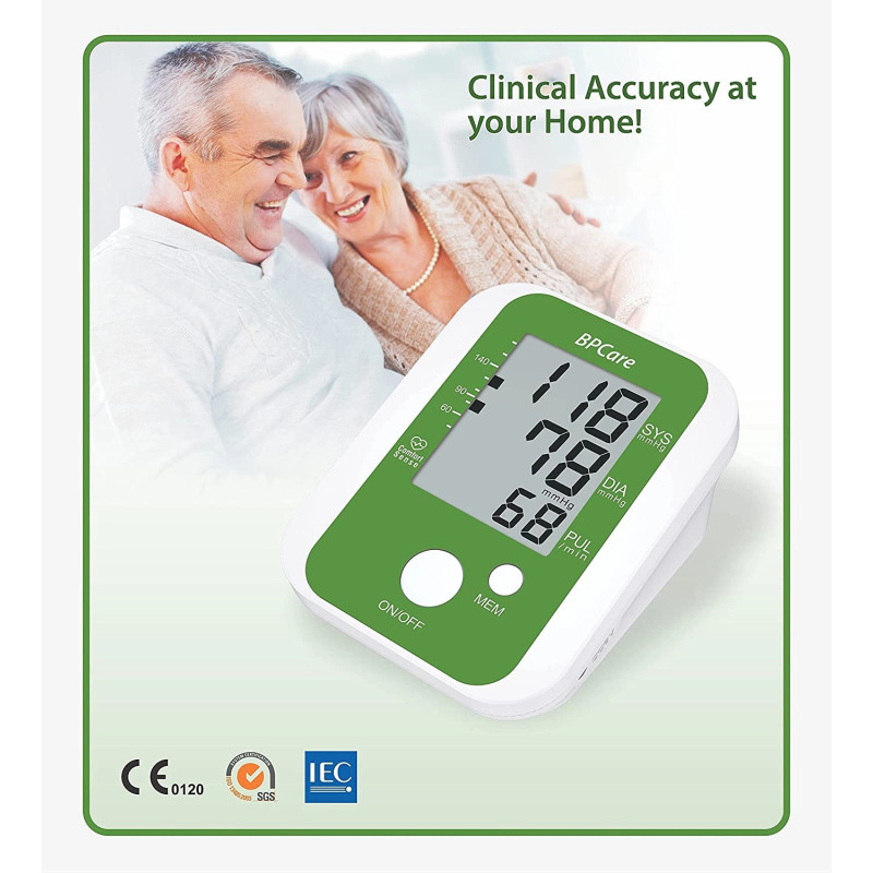 The built-in memory stores previous readings for easy tracking. This BPCare BP monitor helps detect irregular heartbeats, alerting you to possible issues. It's a perfect home blood pressure machine for patients, caregivers, and health-conscious individuals.