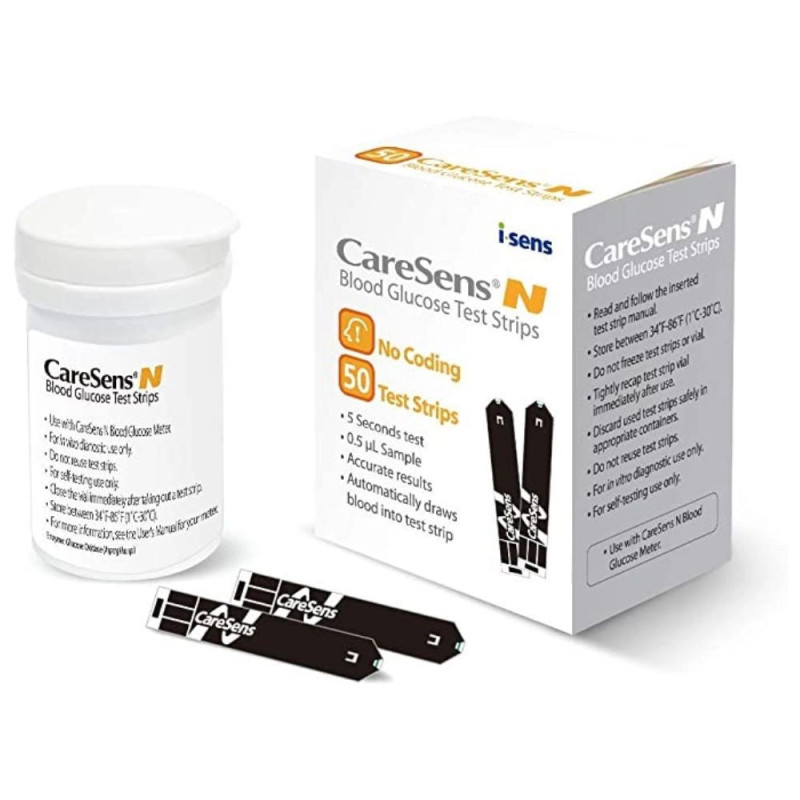 CareSens N 50 Test Strips are accurate, easy-to-use blood glucose test strips compatible with CareSens glucometers. Use CareSens N 50 Test Strips daily to manage your blood sugar effectively. These CareSens N 50 Test Strips require only a small sample and provide fast results, making them reliable diabetic test strips for consistent glucose monitoring.