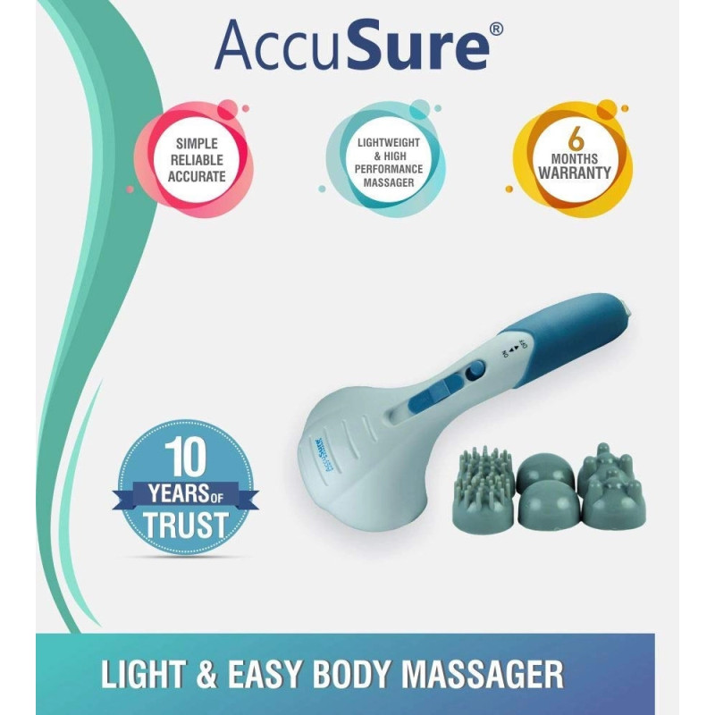 AccuSure Body Massager Hammer offers deep muscle relaxation using advanced vibration technology. This double head massager is ideal for relieving muscle tension. AccuSure Body Massager Hammer helps ease back, neck, and shoulder pain. Use AccuSure Body Massager Hammer as a full body massager or electric body massage device. Its powerful motor and ergonomic design make it perfect for pain relief.
