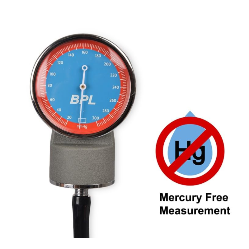Monitor blood pressure with confidence using the Aneroid Sphygmomanometer Mercury Free Big Dial Face from BPL Medical Technologies. Designed for precision, safety, and durability, this device provides accurate manual readings without using mercury, making it environmentally friendly and safe for frequent clinical use.
