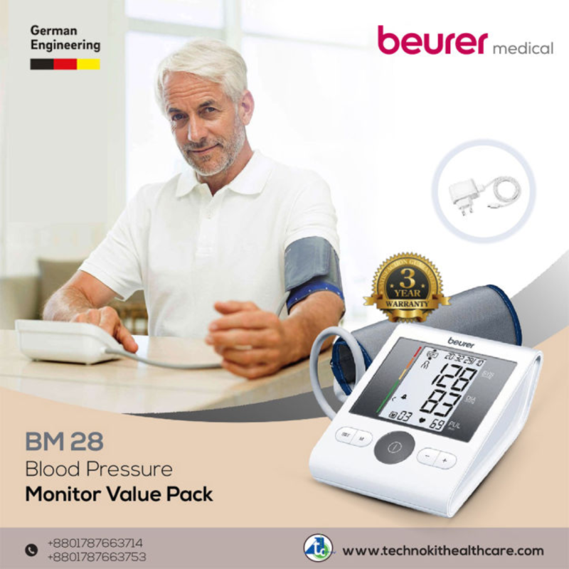Stay on top of your health with the Beurer BM28 Blood Pressure Monitor. This advanced digital BP machine delivers accurate, easy-to-read results and is ideal for daily use at home. Whether you're monitoring for hypertension or simply keeping track of your heart health, the Beurer BM28 Blood Pressure Monitor is the perfect tool.