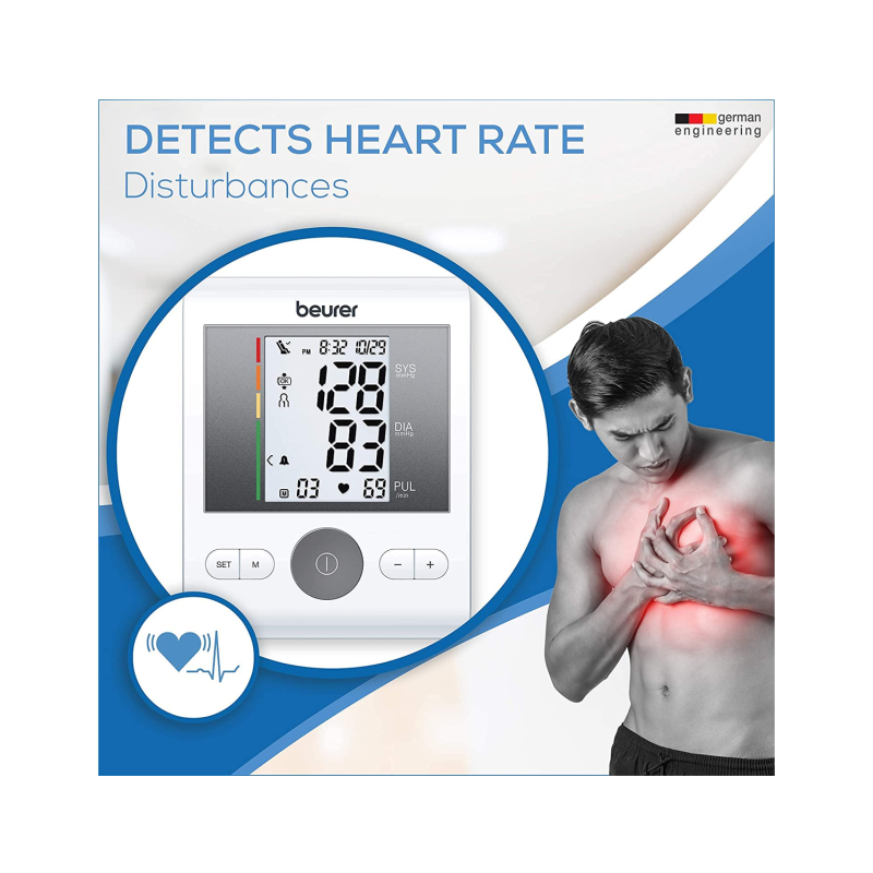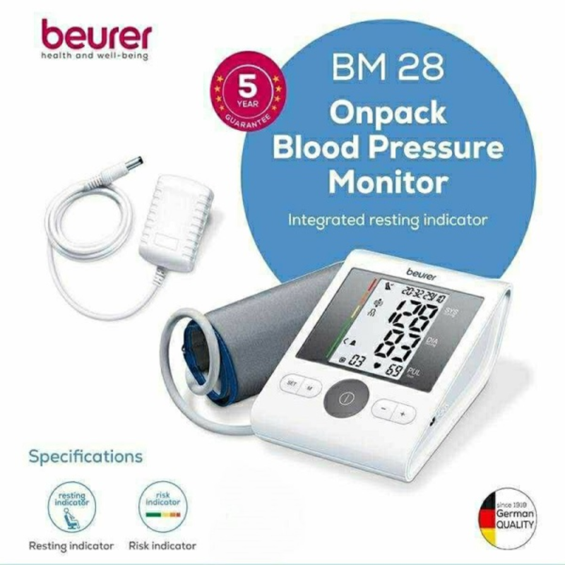 digital blood pressure machine for precise readings at home. Equipped with a heart rate monitor and WHO indicator, this Beurer BM28 Blood The Beurer BM28 Blood Pressure Monitor with Adaptor is a trusted Pressure Monitor with Adaptor supports two users and stores 120 readings. The included adaptor ensures uninterrupted use, making the Beurer BM28 Blood Pressure Monitor with Adaptor ideal for daily health tracking.