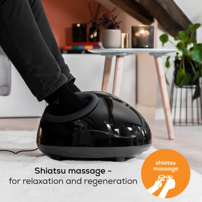 The Beurer FM 90 Foot Massager combines shiatsu massage with soothing heat, stimulating blood flow and helping to relax muscles deeply. Whether you're on your feet all day or simply seeking daily relaxation, this Shiatsu Foot Massage Device is your go-to solution. It offers customizable intensity levels and a gentle warming function, perfect for cold feet or poor circulation.