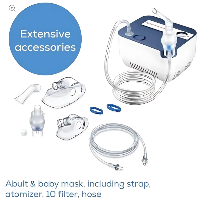 Its compact design and quiet operation make it suitable for use with children and elderly patients. The Beurer IH17 Nebulizer includes a complete set of accessories: mouthpiece, masks for adults and children, air filter, and storage bag. Whether you need regular steam inhalation or emergency respiratory therapy, it’s an excellent tool for your home medical kit.