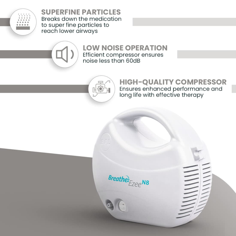 Compact and lightweight, the BPL BreathEzee N8 is perfect for individuals who need accessible and portable respiratory therapy. Its quiet operation allows comfortable treatment sessions, while the ergonomic design makes it easy for children and adults alike to use. With advanced nebulization technology, this portable nebulizer machine delivers medication with precision and consistency.