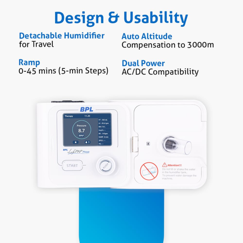 The BPL Medical Technologies LifePAP Prime features a compact, lightweight design that fits seamlessly into both clinical and home settings. The built-in humidification option improves patient comfort during extended use. Designed for durability, this Non-Invasive Ventilator helps maintain consistent respiratory performance while supporting better oxygen saturation and sleep quality.
