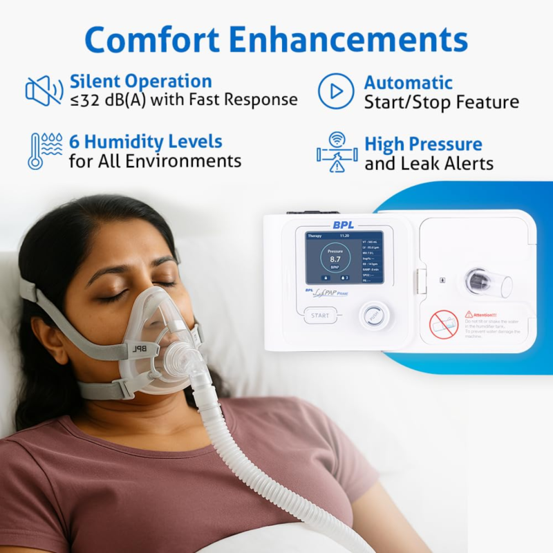 The BPL Medical Technologies LifePAP Prime is an advanced Non-Invasive Ventilator designed to deliver efficient respiratory support with precision and comfort. Built with intelligent pressure control technology, the BPL Medical Technologies LifePAP Prime provides consistent bi-level positive airway pressure, improving airflow and reducing breathing effort during sleep. Ideal for patients with sleep apnea, COPD, and other respiratory disorders, the BPL Medical Technologies LifePAP Prime ensures reliable and gentle ventilation therapy.