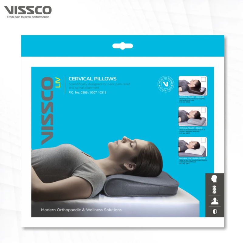 The Vissco PC 0313 Cervical Contoured Pillow offers precise neck alignment and posture support. Designed to relieve pain and reduce stiffness, this Cervical Contoured Pillow supports the cervical spine naturally. As an Orthopaedic Neck Support Pillow, it improves sleep quality, eases muscle strain, and enhances comfort. The Cervical Contoured Pillow is perfect for home, office, or travel use.