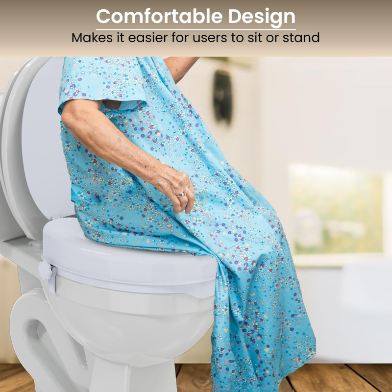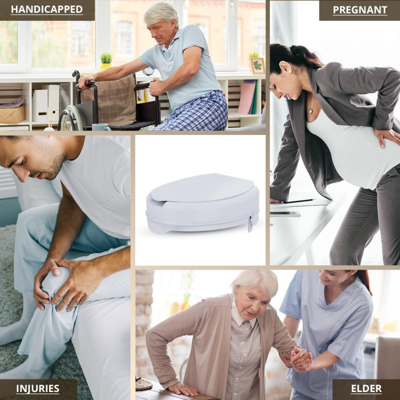 This elevated commode seat is ideal for home use, rehabilitation centers, or hospitals. Installation is quick and tool-free—simply place it on your existing seat. It's especially helpful for individuals with arthritis, joint pain, or mobility limitations. As a commode seat for elderly users, it promotes independence and reduces the risk of falls in the bathroom.