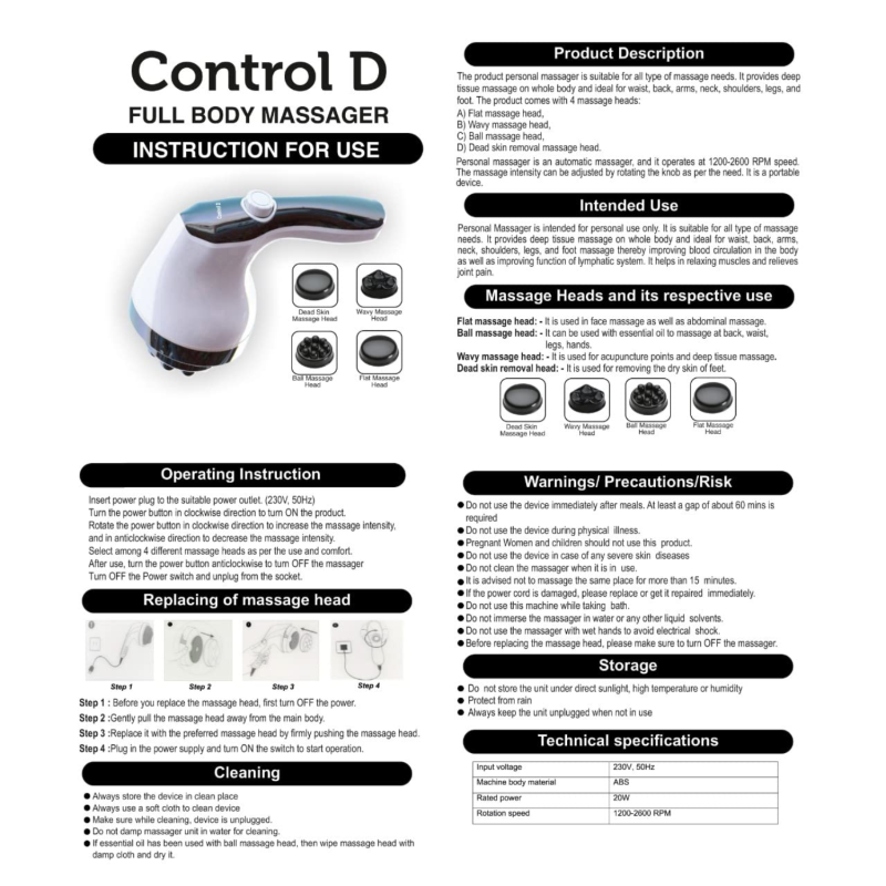 The Control D Massager is a powerful device designed to reduce muscle tension, improve blood circulation, and provide deep relaxation. With its ergonomic design and multiple speed settings, the Control D Massager offers targeted relief for back, shoulders, and legs. Whether you want to ease daily stress or soothe sore muscles, the Control D Massager works as an ideal Electric Body Massager for home or travel use. Compact, durable, and easy to operate, it’s a perfect choice for everyone.