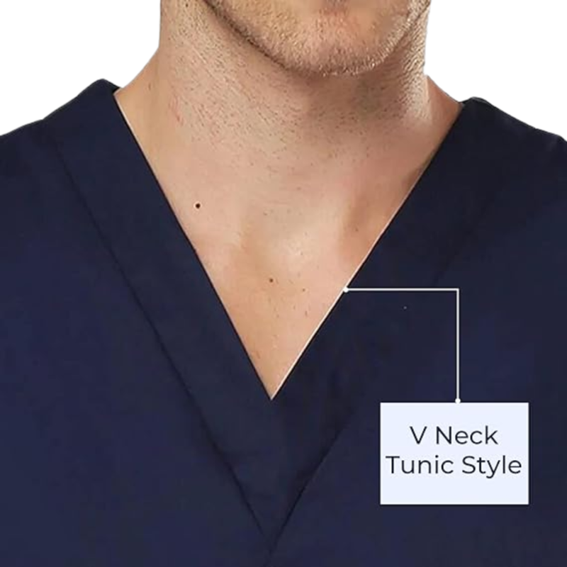 The Doctor Scrub Dark Blue also features multiple pockets for convenient storage of tools, pens, and notepads, making it functional for daily use. Its reinforced stitching ensures durability, while the rich dark blue color maintains a sharp and polished look. This Medical Scrub Suit protects underlying clothing and contributes to maintaining hygiene standards.