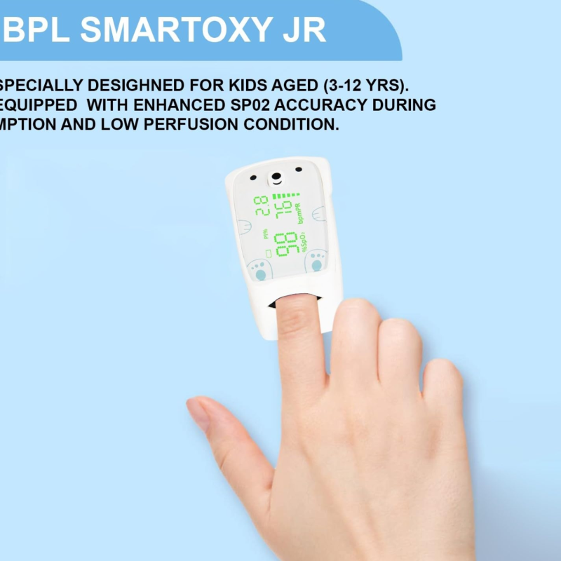 Durable and safe, the Smart Oxy Junior Fingertip Pulse Oximeter reflects the high standards of BPL Medical Technologies. Suitable for children and adults, it is ideal for personal use, first-aid kits, or clinical monitoring.