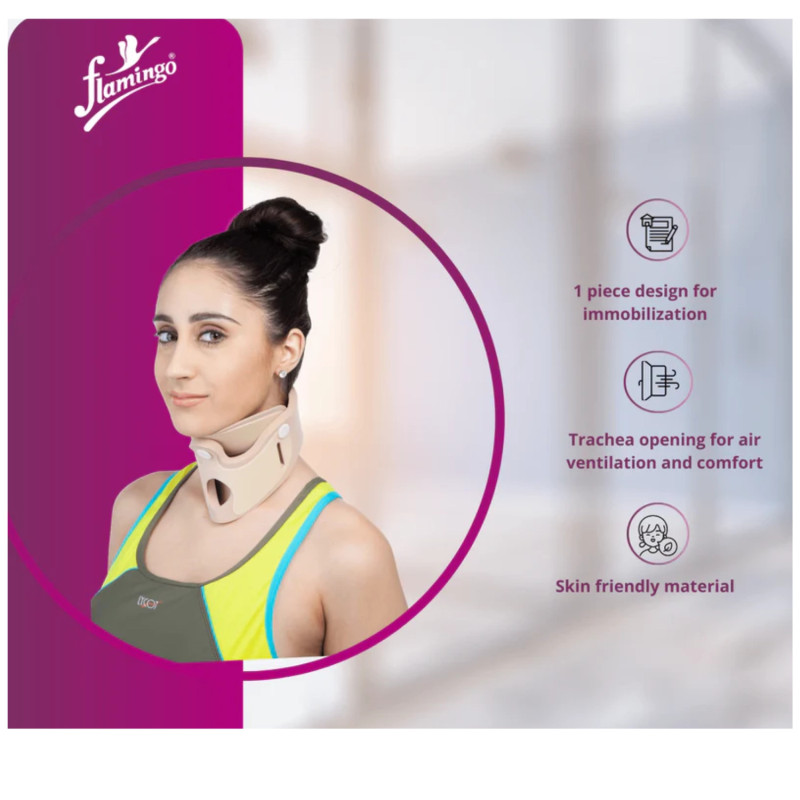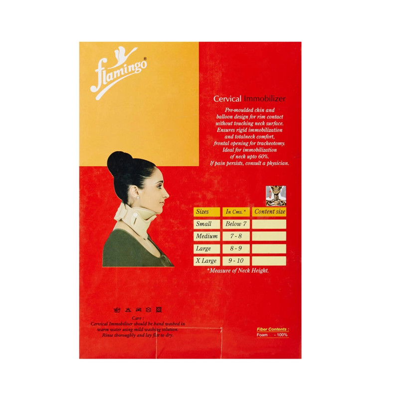 Flamingo Cervical Immobilizer OC 2008 provides effective neck support, helping relieve pain and maintain stability for cervical conditions. Designed for maximum comfort, it offers soft padding, firm support, and an adjustable fit to suit individual needs. Recommended for post-operative care, cervical spondylitis, and neck strain, it restricts unwanted neck movement for faster recovery. Its lightweight and breathable material ensures long-lasting comfort without compromising on function. Stay active with confidence and reduce discomfort with this reliable cervical immobilizer.