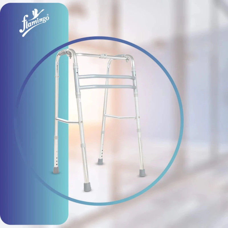 Flamingo Classic Walker OC 2293 is a sturdy, lightweight, and foldable mobility aid designed for the elderly and those recovering from injuries. Made from durable aluminum, it offers easy maneuverability and enhanced stability with anti-slip rubber tips. The height-adjustable feature ensures a comfortable fit for all users. This walker is easy to fold and store, making it convenient for daily use at home or on the go. Ideal for post-surgery recovery and supporting independent movement