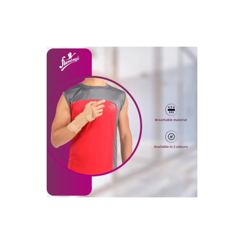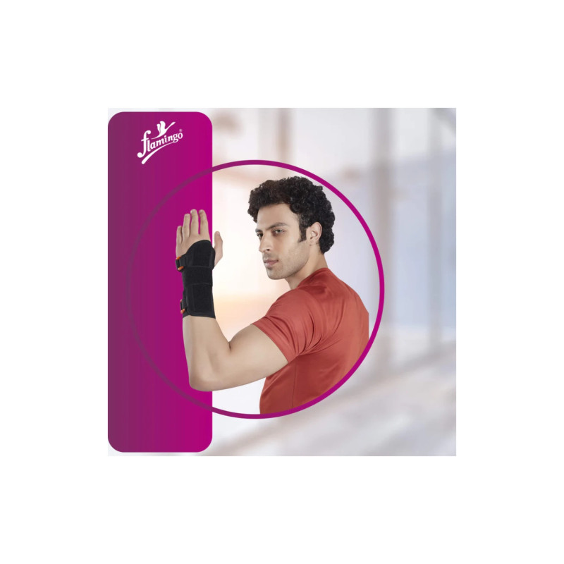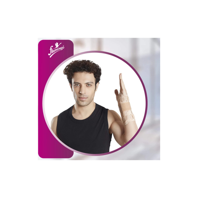 Flamingo Wrist Splint OC 2015 is designed for wrist support and pain relief. Made with high-quality elastic material, this wrist splint offers comfort and stability for people with wrist injuries, sprains, or strains. The splint is adjustable, allowing for a personalized fit and ease of use. Ideal for those recovering from surgery, repetitive strain injuries, or who need extra support during daily activities. Flamingo Elastic Wrist Splint OC 2015 provides effective wrist support to promote healing and prevent further strain.