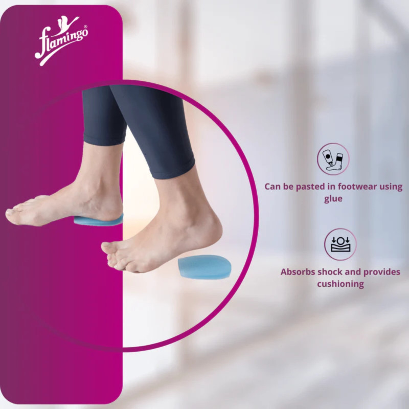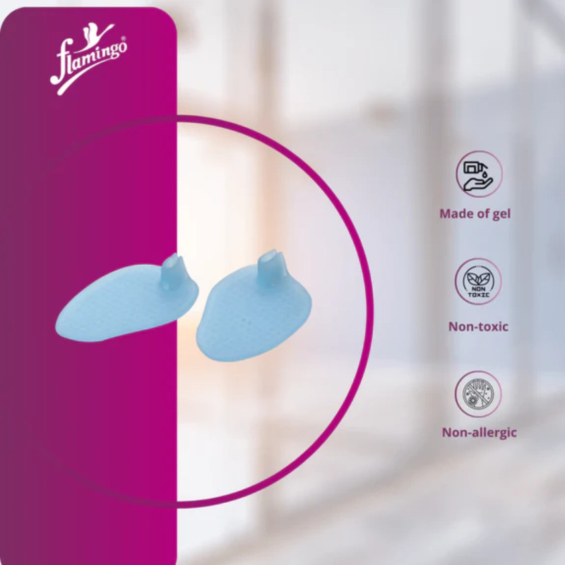 Flamingo Gel Metatarsal Pad (Female) OC 2136 provides superior forefoot cushioning, reduces pressure, and relieves pain caused by corns, calluses, and metatarsalgia. Made from soft, durable gel, these pads absorb shock and prevent discomfort while walking or standing for long hours. Ideal for women wearing high heels, sports shoes, or daily footwear. The ergonomic design ensures a secure fit, providing all-day comfort. These washable and reusable Flamingo gel metatarsal pads are perfect for foot care, ensuring maximum support and pain relief.