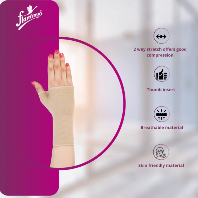 Flamingo Palm Brace OC 2104 is an ideal wrist support designed to provide relief from pain and aid recovery from wrist injuries. It offers firm compression, enhances comfort, and stabilizes the wrist during physical activities. Made from high-quality breathable material, this wrist brace ensures all-day wearability. Whether you're dealing with sprains, strains, or arthritis, this palm brace is perfect for wrist stabilization and faster healing. Its adjustable fit and durable design make it suitable for all-day use, helping you stay active and pain-free.