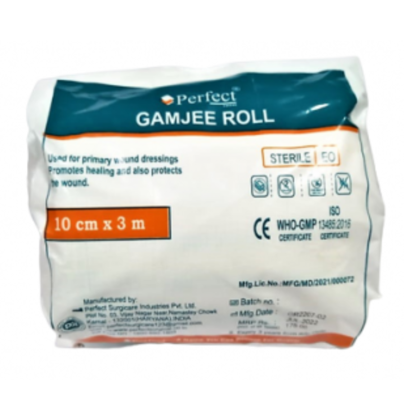 Gamjee Roll 10cm is a soft, absorbent dressing roll ideal for wound protection and surgical dressing. Made of layered cotton and gauze, Gamjee Roll 10cm cushions wounds, absorbs exudates, and prevents contamination. Whether for hospitals, clinics, or home first aid kits, Gamjee Roll 10cm is essential for clean, secure wound care. Its breathable layers promote healing and reduce infection risk. Gamjee Roll offers trusted, hygienic support for injuries, burns, and post-operative care.