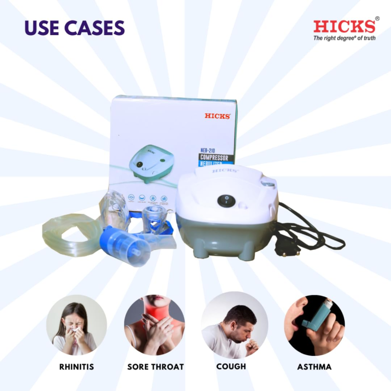 Hicks Nebulizer 210 is a powerful compressor nebulizer machine for effective respiratory care. The Hicks Nebulizer 210 provides quick relief and consistent delivery. With user-friendly design and portable build, the Hicks Nebulizer 210 is ideal for adults and kids. Use this reliable respiratory therapy device at home for asthma, COPD, and more.