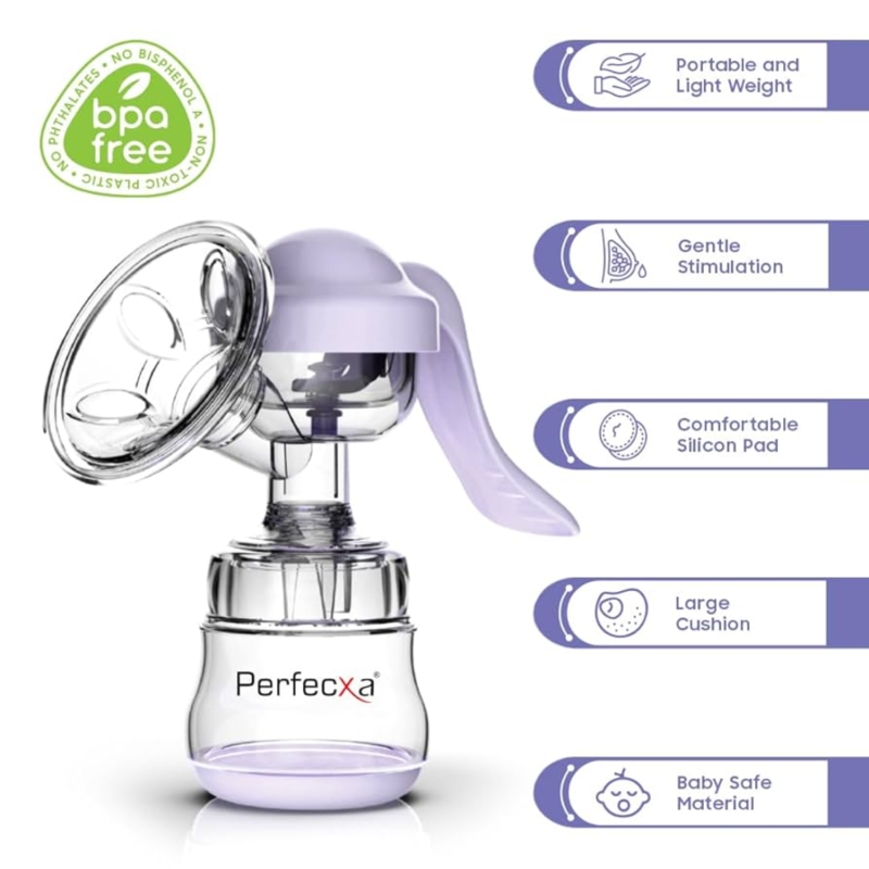 The Perfecxa Manual Breast Pump is designed for comfort and convenience. This handheld breastfeeding pump is perfect for daily milk expression. Use the Perfecxa Manual Breast Pump at home or on the go with ease. Its compact, BPA-free design ensures safety for your baby. The Perfecxa Manual Breast Pump offers silent operation and easy cleaning, making it a favorite for nursing mothers.