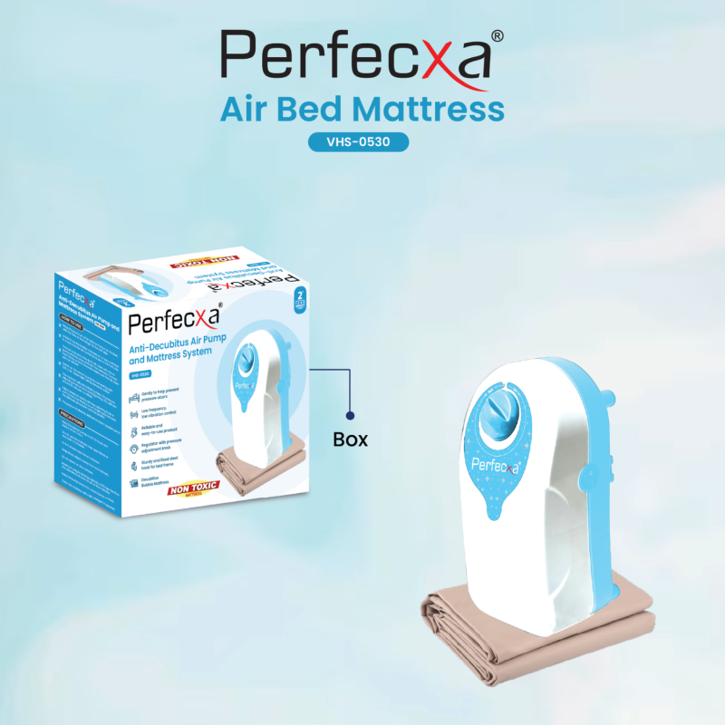 The Perfexa Anti-Decubitus Air Pump and Mattress System VHS-0530 provides effective prevention of bedsores with continuous alternating pressure therapy. This Alternating Pressure Mattress system improves blood circulation, relieves pressure points, and ensures patient comfort. The Perfexa Anti-Decubitus Air Pump and Mattress System is ideal for hospitals, clinics, and home care. Trust the Perfexa Anti-Decubitus Air Pump and Mattress System for reliable pressure ulcer prevention.