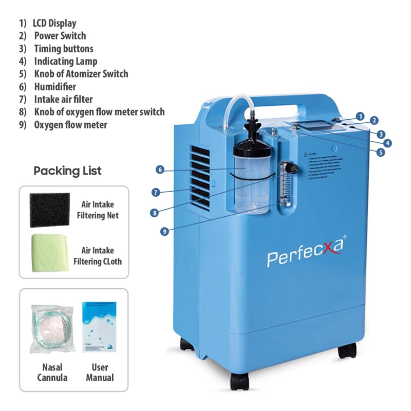 Perfexa Oxygen Concentrator VHS-0340 – Advanced Portable Oxygen Machine for Home and Hospital Use