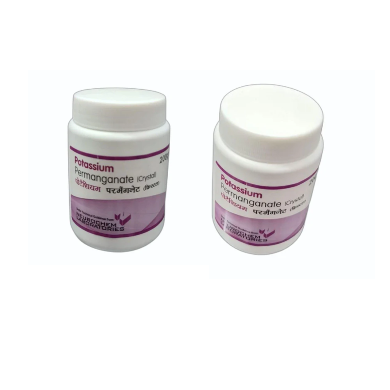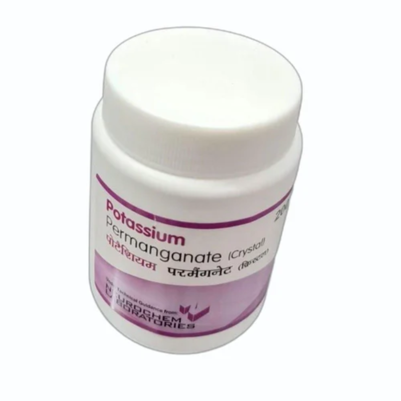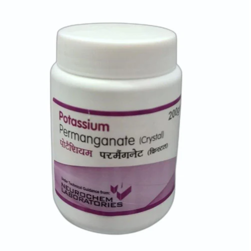 Potassium Permanganate 200gm is a powerful antiseptic solution for wounds commonly used in medical and home care settings to disinfect skin, treat fungal infections, and promote wound healing. This skin disinfectant is known for its strong oxidizing properties, which help eliminate bacteria, fungi, and other harmful microbes.