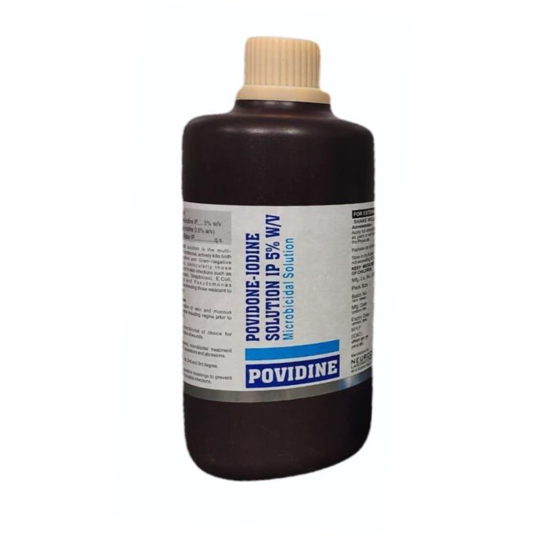 Neurochem Povidone Iodine Solution 500ML is a medical-grade povidone iodine solution formulated for safe and effective antiseptic use. This versatile antiseptic solution is commonly used in hospitals and clinics as a surgical antiseptic and skin disinfectant, trusted for its broad-spectrum antimicrobial action.