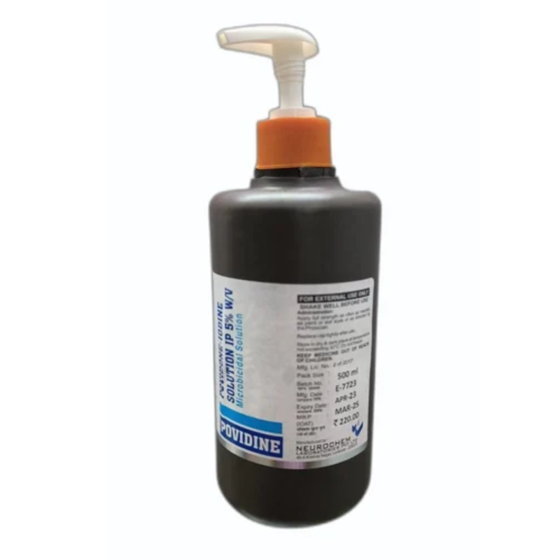 Neurochem Povidone Iodine Solution 500ML is a trusted povidone iodine solution for wound care. This povidone iodine solution acts as a fast-acting antiseptic solution, ideal for minor cuts, skin infections, and pre-surgical disinfection. The povidone iodine solution is also recommended as a surgical antiseptic and skin disinfectant, supporting faster healing. Choose this iodine antiseptic for reliable wound cleaning and effective protection.