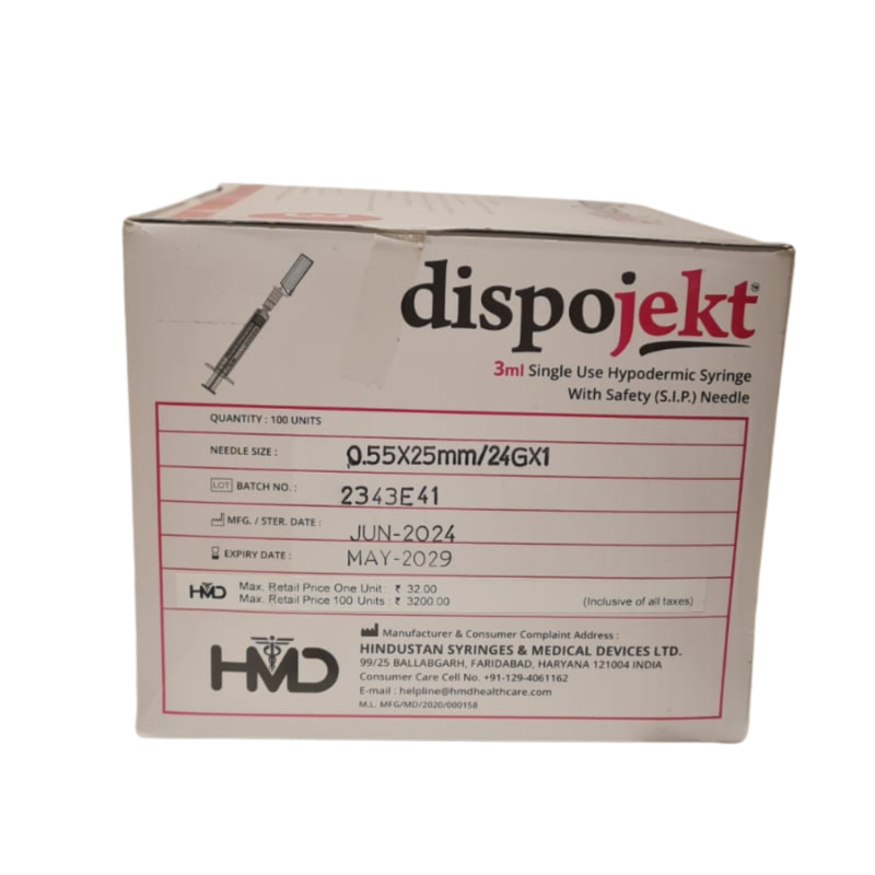 Rossify Dispojekt 3ML Single Use Syringe with Safety Hypodermic Syringe SIP Needle