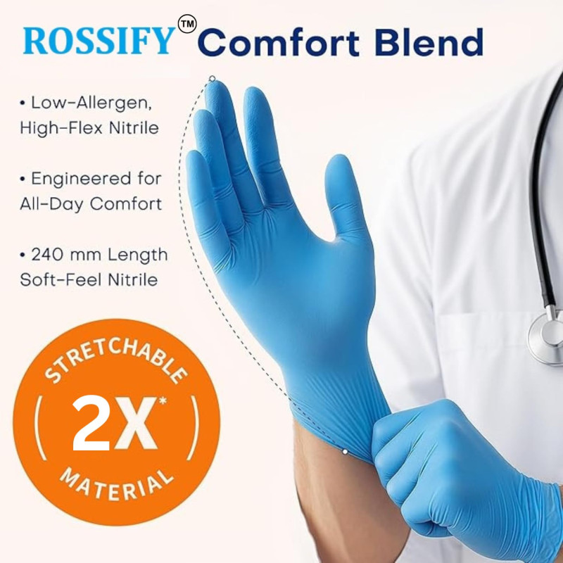 Rossify Nitrile Gloves Blue Pack of 100 – Premium Disposable Nitrile Gloves for Medical, Industrial & Household Use