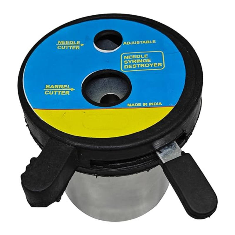 The Rossiy Stainless Steel Manual Needle Cutter is designed for safe and hygienic disposal of medical sharps in hospitals, clinics, and laboratories. Built with a durable stainless steel body, this device helps reduce needle-stick injuries and contamination. Each unit includes a strong syringe destroyer mechanism that cuts and destroys used syringes with ease.