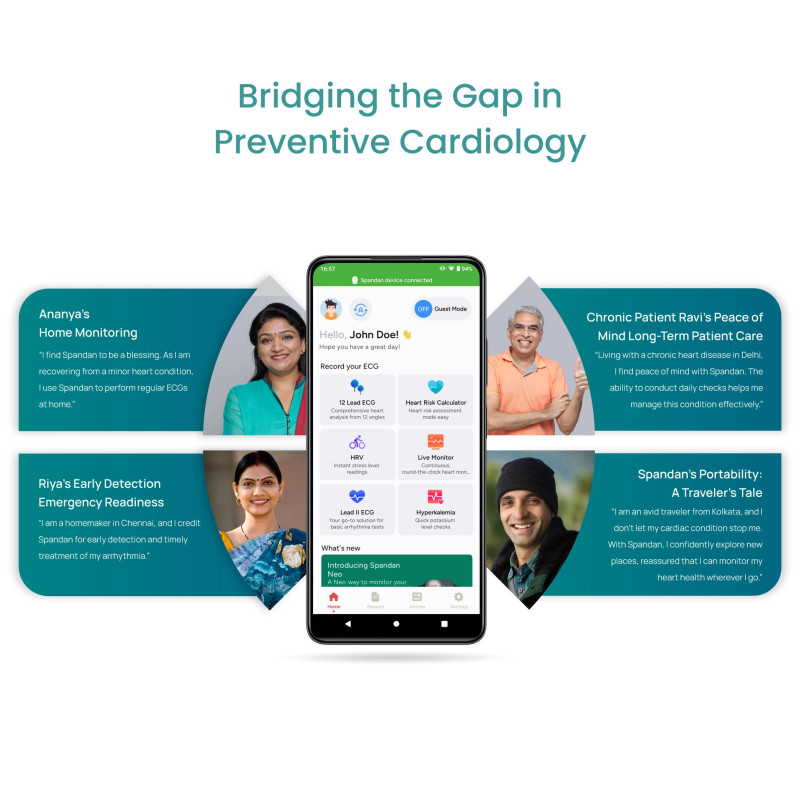 Monitor your heart health with the Sunfox Spandan Neo Portable ECG Device. This portable ECG for home use ensures a quick and reliable check with 99.7% accuracy. The Sunfox Spandan Neo Portable ECG Device is designed as a personal ECG machine and features an easy to use 12 lead ECG format for detailed readings. Compact, smart, and precise—the Sunfox Spandan Neo Portable ECG Device is your reliable partner for heart rate monitoring.