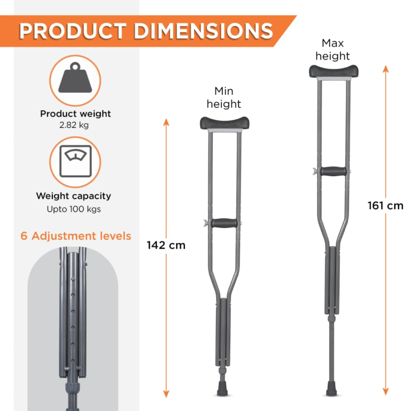 These crutches are more than just a tool—they’re a mobility aid that helps you stay active and self-reliant. The aluminium construction ensures durability while maintaining portability, making them easy to carry and store.
