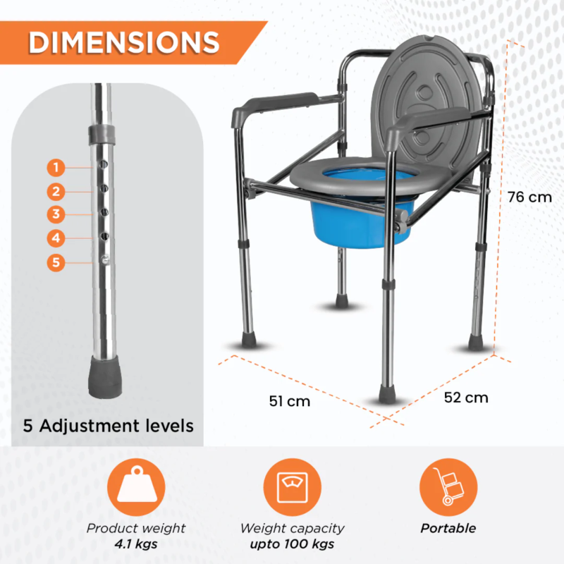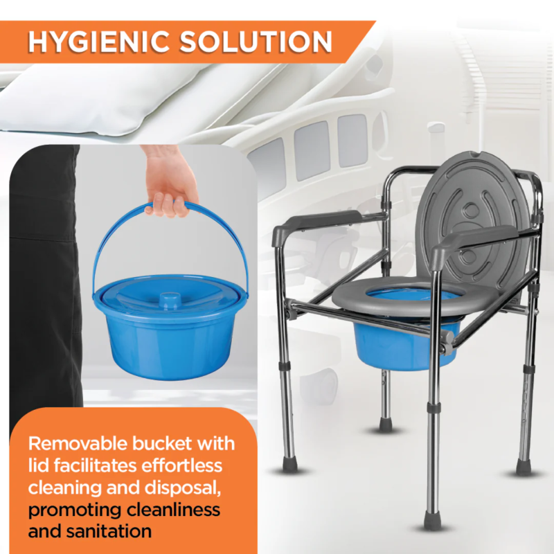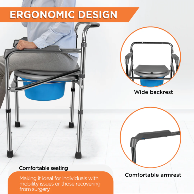 Trusted by healthcare providers and home caregivers, this Portable Folding Commode Chair blends comfort, functionality, and durability in one practical mobility aid.