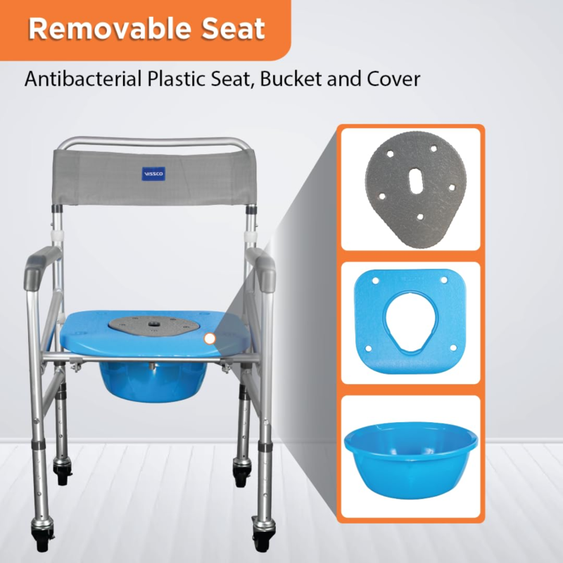Vissco Comfort Foldable Commode Shower Chair – Portable Bathroom Mobility Aid with Castor Wheels for Safety & Support