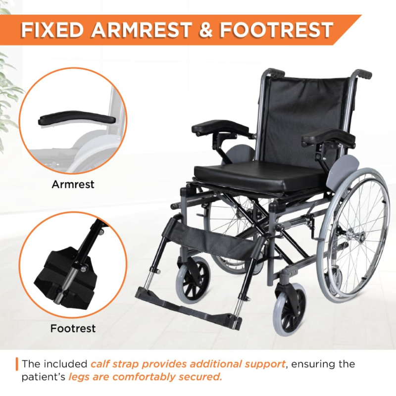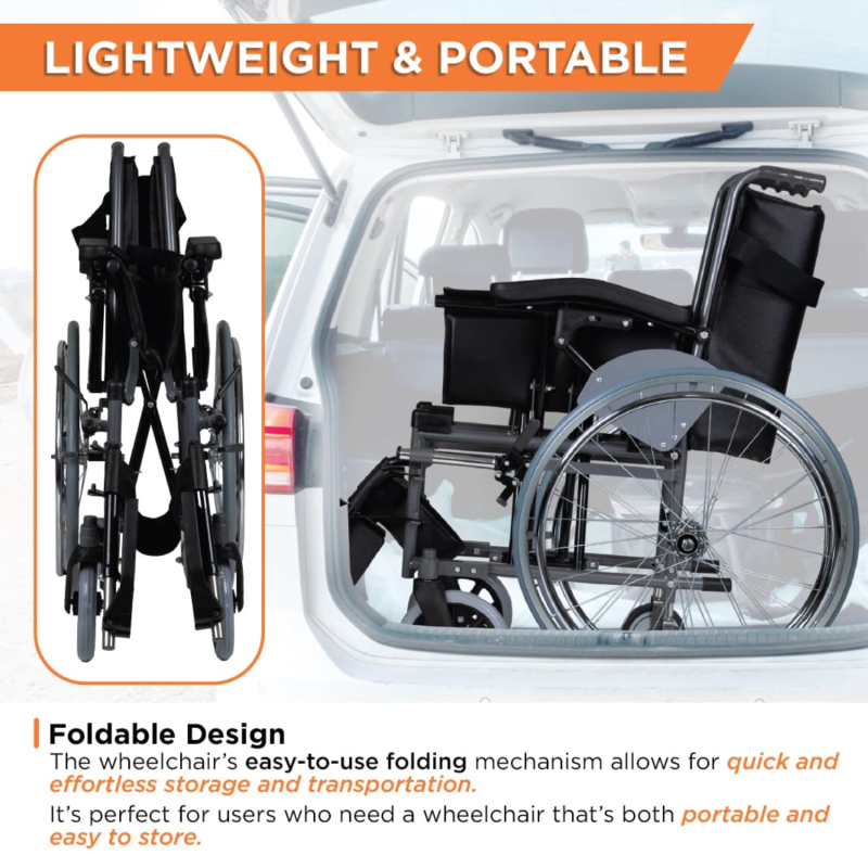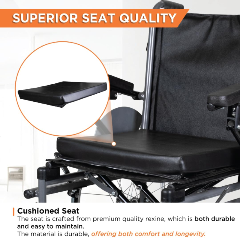 One of its standout features is the Removable Big Wheels, allowing users to quickly detach them for compact storage or easy transportation. This design is ideal for those who need flexibility in their mobility solution. The Vissco Imperio Wheelchair also features a foldable frame, padded armrests, and comfortable seating for long-term use.