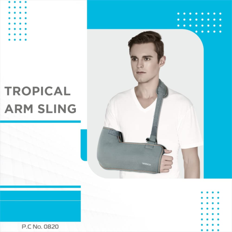 The vissco PC 0820 Tropical Arm Sling is a well-engineered support solution designed to immobilize and support the arm after injury or surgery. This orthopedic arm sling ensures the right alignment of the shoulder and arm, reducing pressure on muscles and ligaments. Whether you're dealing with a fracture, sprain, or post-operative recovery, this arm sling for shoulder support is ideal for everyday use.