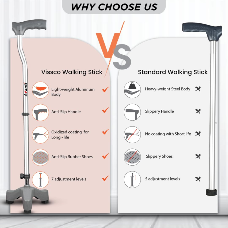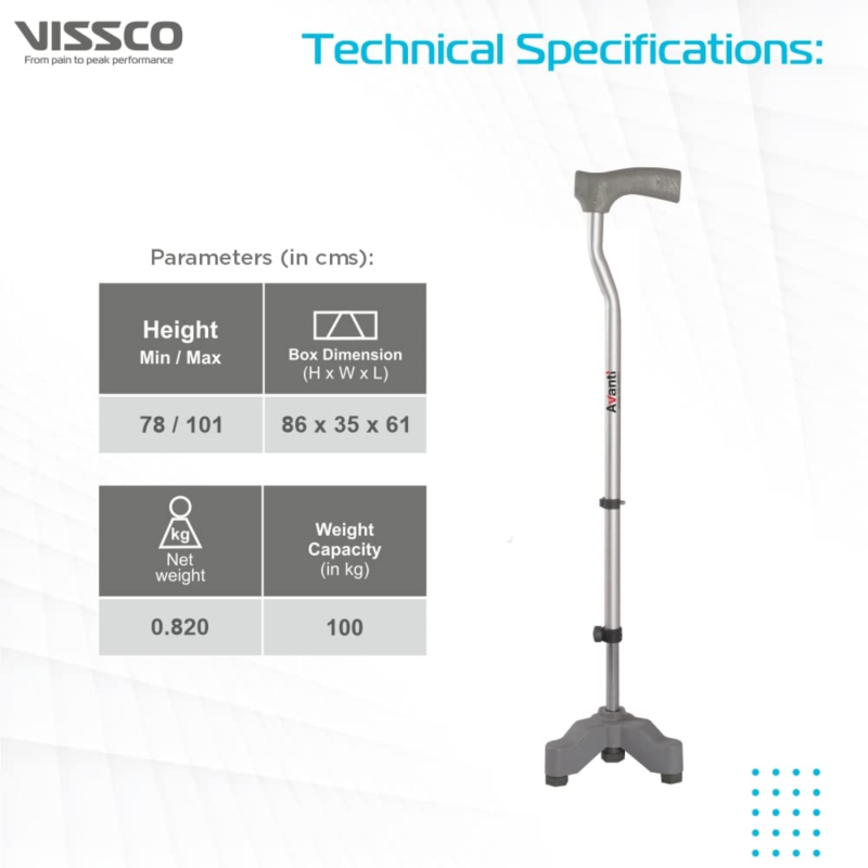The tripod base not only improves stability but also reduces the risk of the stick tipping over, ensuring safer movement. With the Vissco PC 0907 Avanti L-shape Tripod Stick, you get a reliable, durable mobility aid that enhances your walking experience.