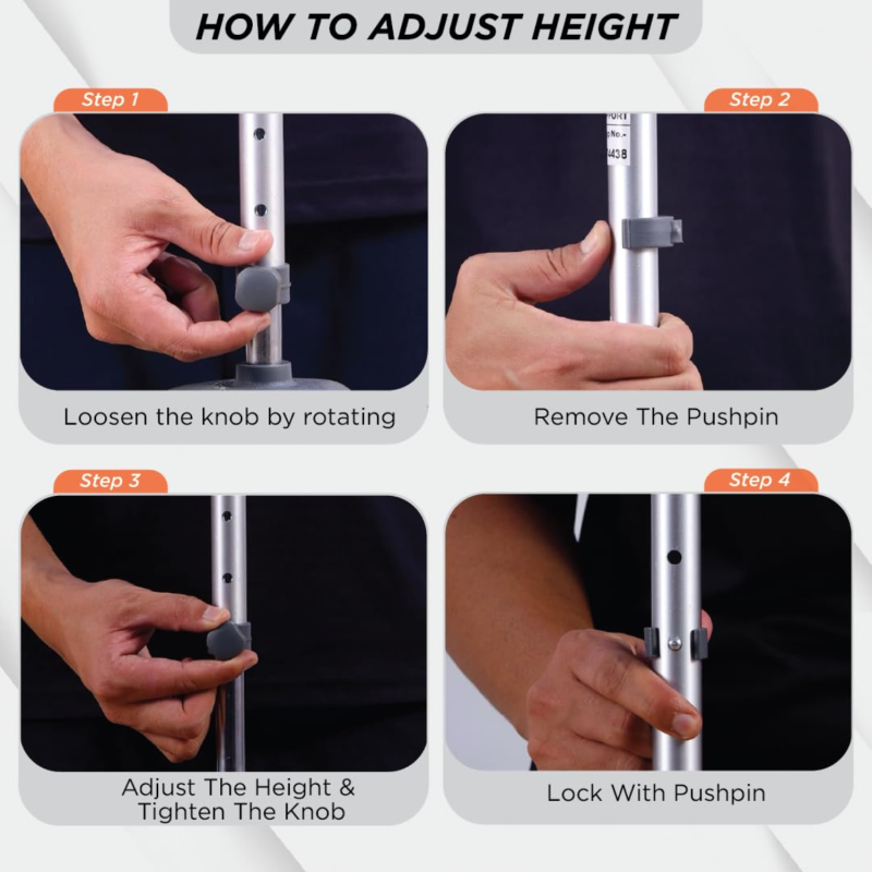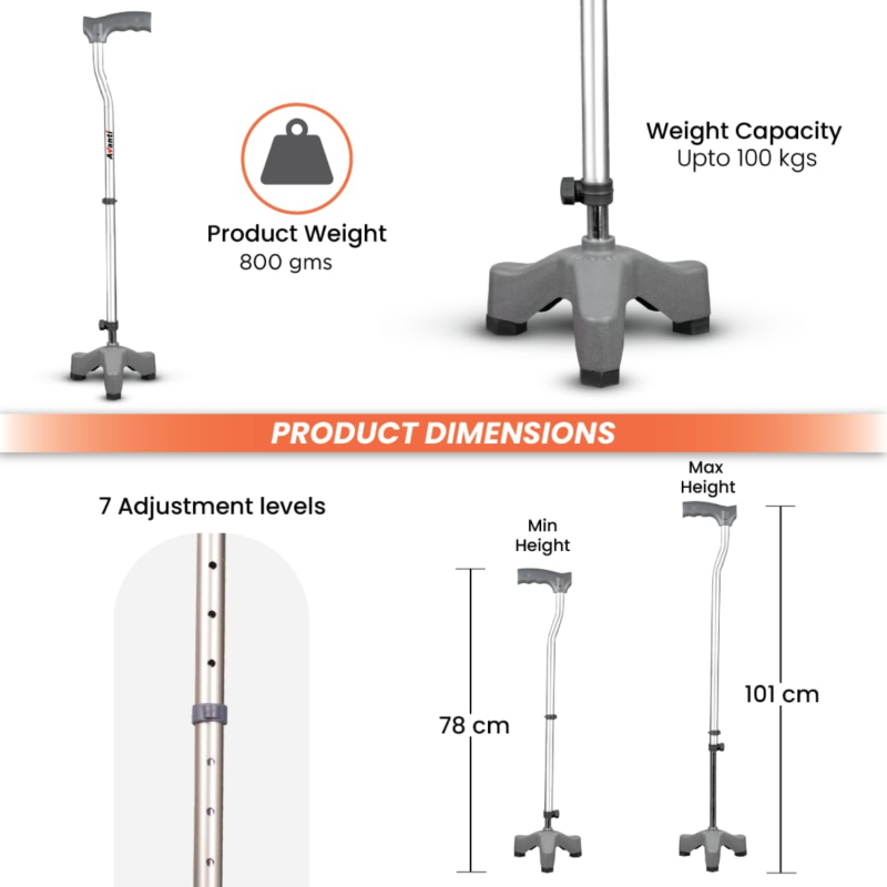 This walking stick is made of high-quality materials, making it lightweight yet strong enough to provide the necessary support. Whether you are recovering from surgery or need a walking aid for everyday mobility, the Vissco PC 0907 Avanti L-shape Tripod Stick is an ideal choice. Its adjustable height ensures a perfect fit, providing comfort and flexibility for users of various heights.