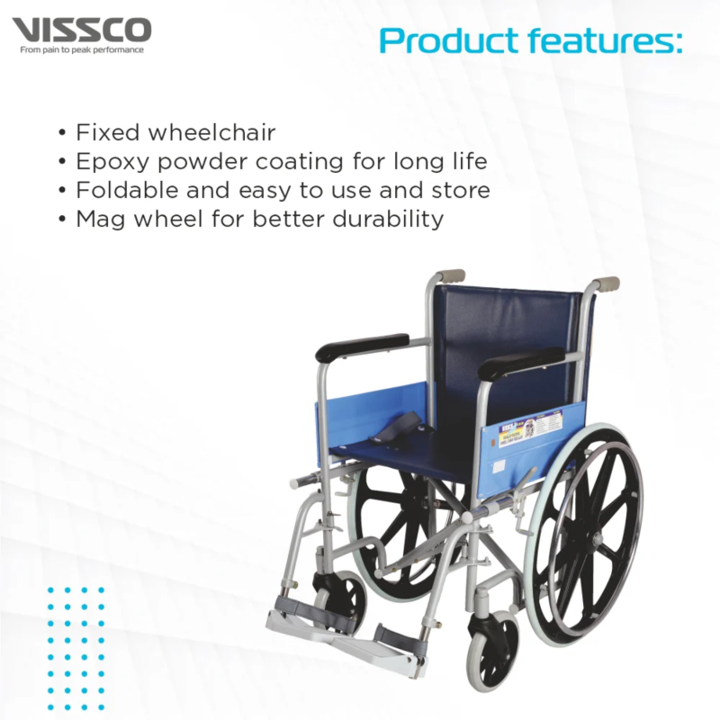 The Vissco PC 0912 Classic Wheelchair is built for individuals seeking comfort, safety, and easy maneuverability. With its wheelchair with fixed big wheel design, it ensures excellent stability and control, making it ideal for both indoor and outdoor use.