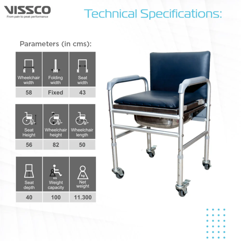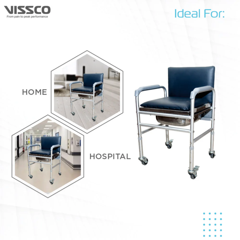 Whether used in a bedroom, living area, or bathroom, the Vissco PC 0914 Comfort Adi Commode with Back Rest blends practicality with comfort. This versatile bathroom safety chair can also be combined with other mobility aids like walkers or wheelchairs for a complete home care solution.