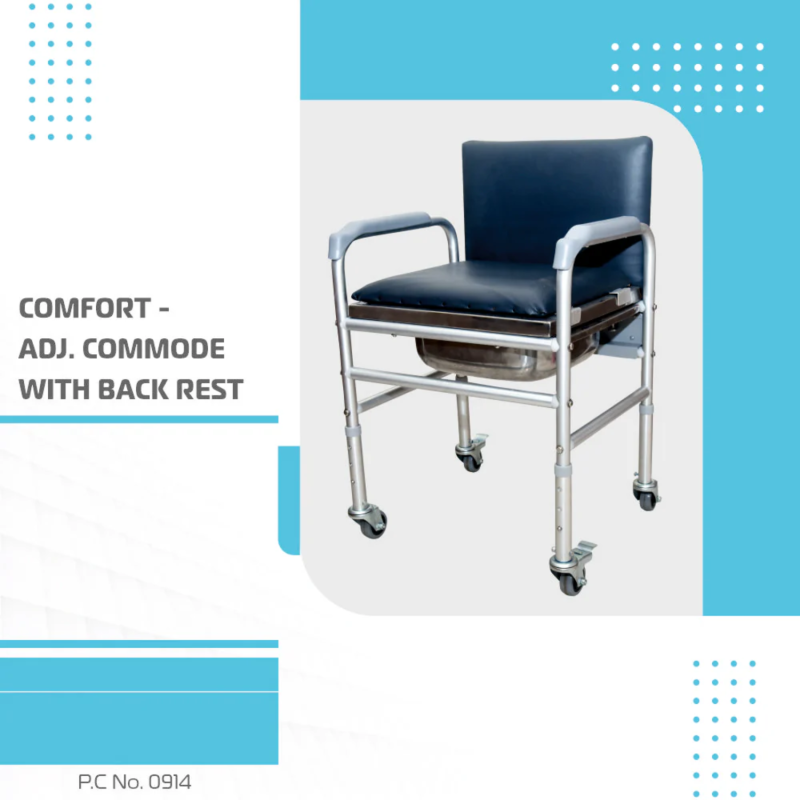 The Vissco PC 0914 Comfort Adi Commode with Back Rest offers stability, comfort, and convenience for seniors and patients. Designed as a commode chair with backrest, it ensures safe bathroom use. This Vissco PC 0914 Comfort Adi Commode with Back Rest is lightweight, durable, and ideal for home care. Easy to fold, the Vissco PC 0914 Comfort Adi Commode with Back Rest provides long-lasting support and hygiene.