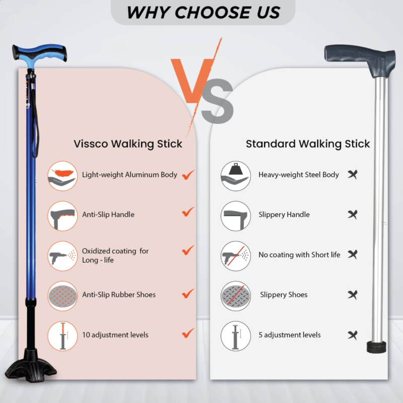 This walking stick is adjustable, allowing you to set the perfect height for your comfort. Whether you're using it for short-term recovery or long-term support, the Vissco PC 2908 Avanti Plus T-shape Aluminium Stick will provide you with the stability and confidence needed to move easily and safely.