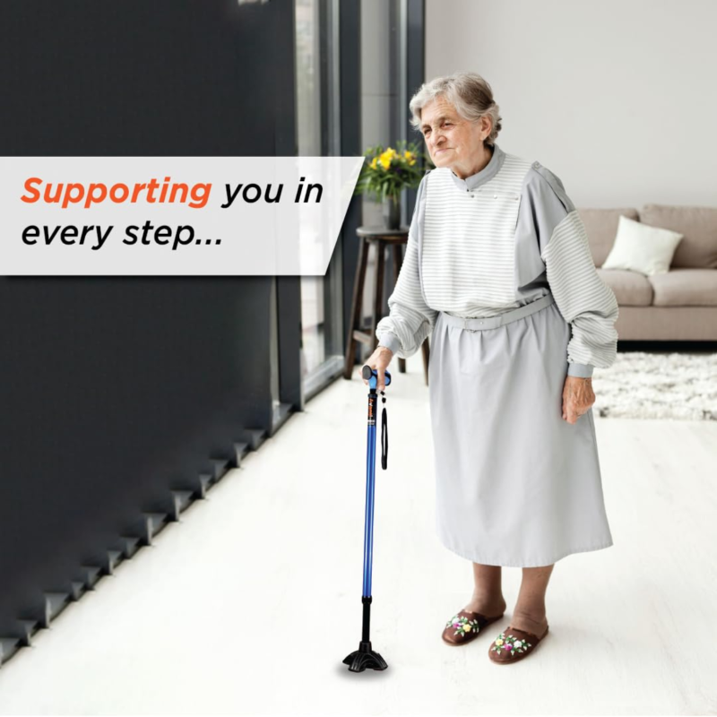 The key feature of the Vissco PC 2908 Avanti Plus T-shape Aluminium Stick is the inclusion of the big shoe. This wide, sturdy base enhances stability and prevents the stick from tipping, making it safer to use on various surfaces. The big shoe also improves balance, particularly for users with mobility challenges or those recovering from surgery.