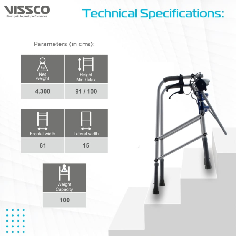 The Vissco PC 2941 Dura Step Walker is an essential mobility aid designed to provide stable and safe support for users recovering from injuries or those with limited walking ability. This adjustable walking aid combines durability with user-friendly features, making it ideal for everyday use.