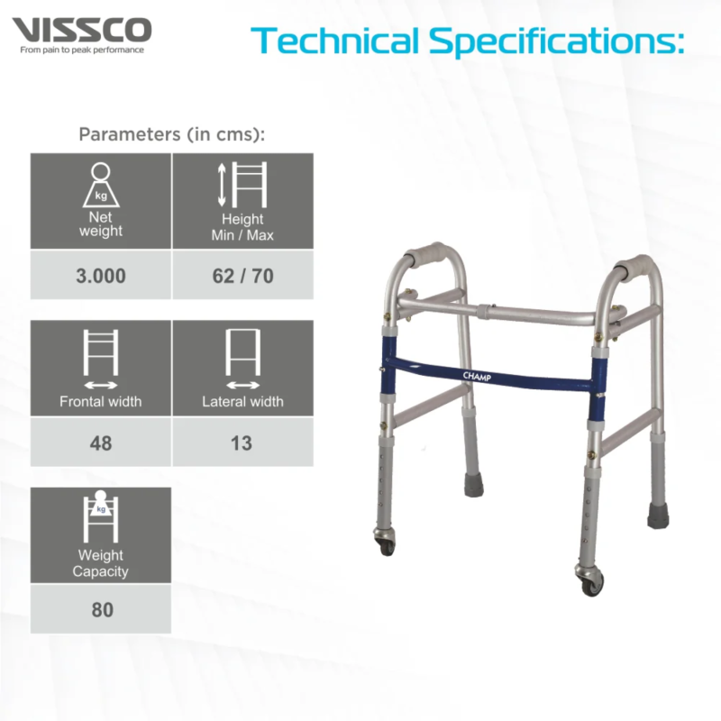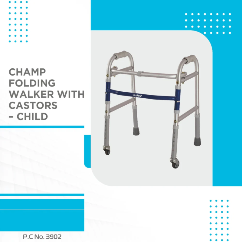 The Vissco PC 3901 Champ Folding Walker-Child is specifically designed to assist children who require extra support for walking. As a folding walker for children, it combines safety, comfort, and easy portability in one durable product.