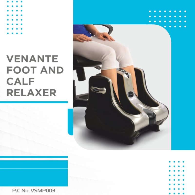 The Vissco PC VSMP 003 Venante Foot and Calf Relaxer is built with durable materials and ergonomic design, ensuring long-lasting performance and user-friendly operation. Its sleek, compact build makes it suitable for home or office use.