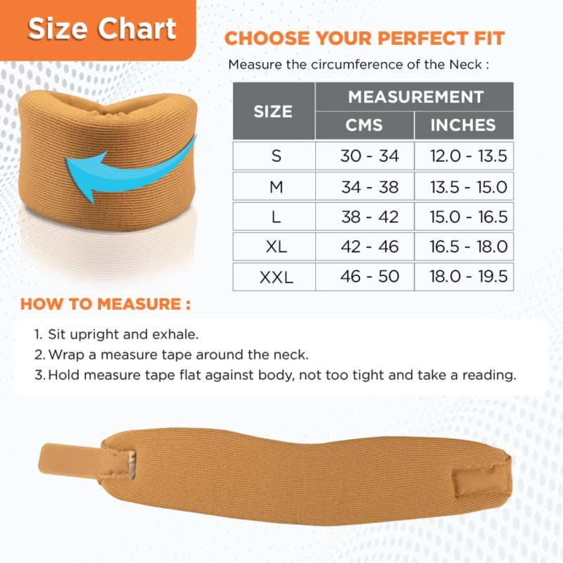 This collar is made from breathable, high-density foam that conforms to your neck’s natural shape. The outer cotton stockinette ensures skin-friendly comfort, even during prolonged use. Lightweight and easy to wear, this neck support brace is ideal for individuals suffering from cervical spondylosis, strain-related injuries, or general stiffness due to bad posture.
